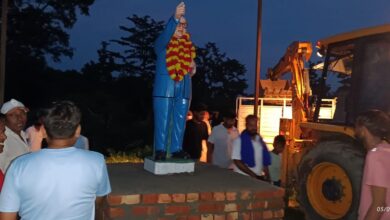 डॉ भीमराव की प्रतिमा खंडित होने पर दलित समाज के लोगों ने नारेबाजी करते हुए जताई नाराजगी….